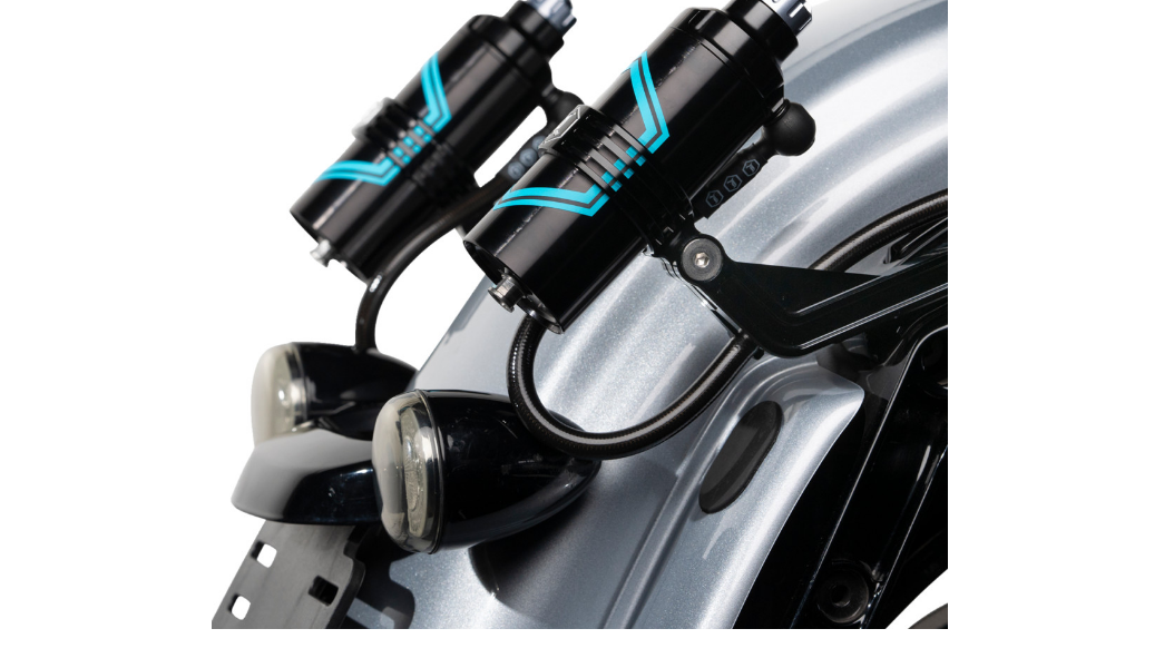 Монтажный комплект смещает выносные резервуары ближе к задней части для создания индивидуального внешнего вида и лёгкого доступа к регуляторам сжатия.