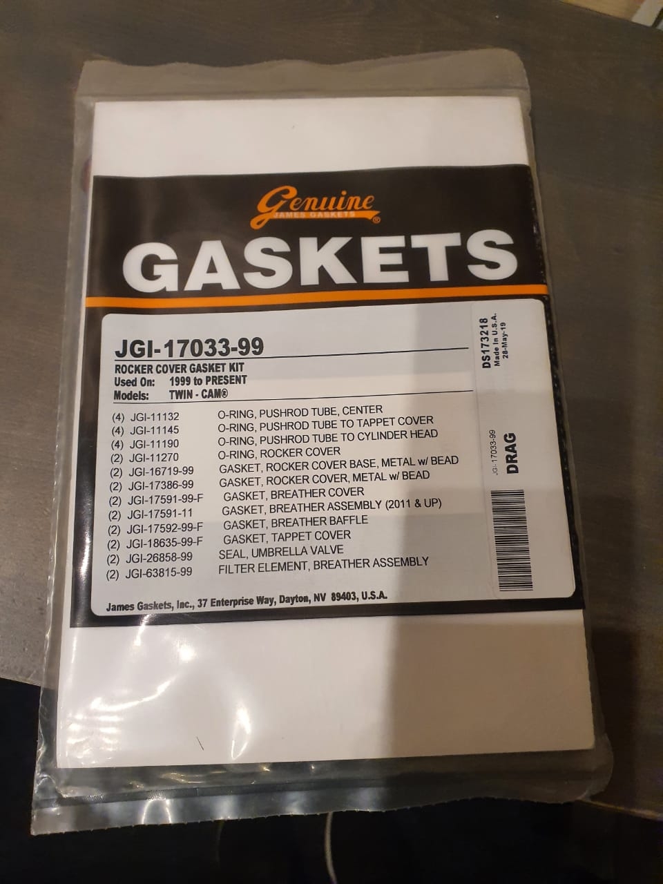 DS-173218 Прокладки Rocker-box, Cam cover 17033-99 James Gasket Twin Cam 1999-2017 Можно заказать