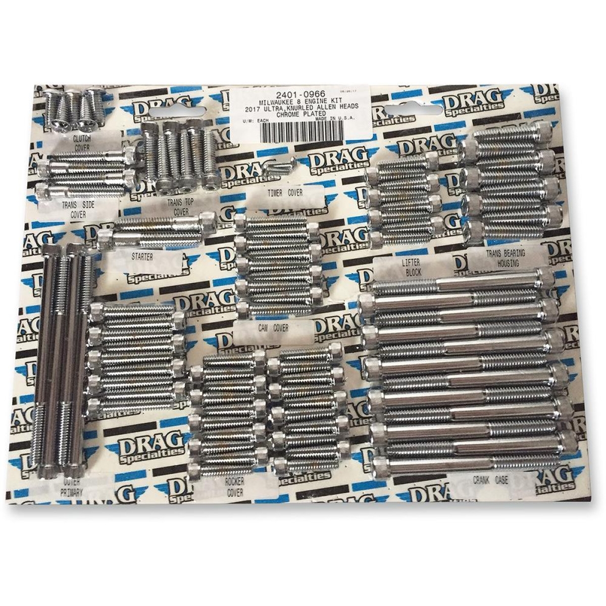 2401-0966 Drag Specialties BOLT KIT M8 ENGINE KNURLED ALLEN HEAD CHROME
