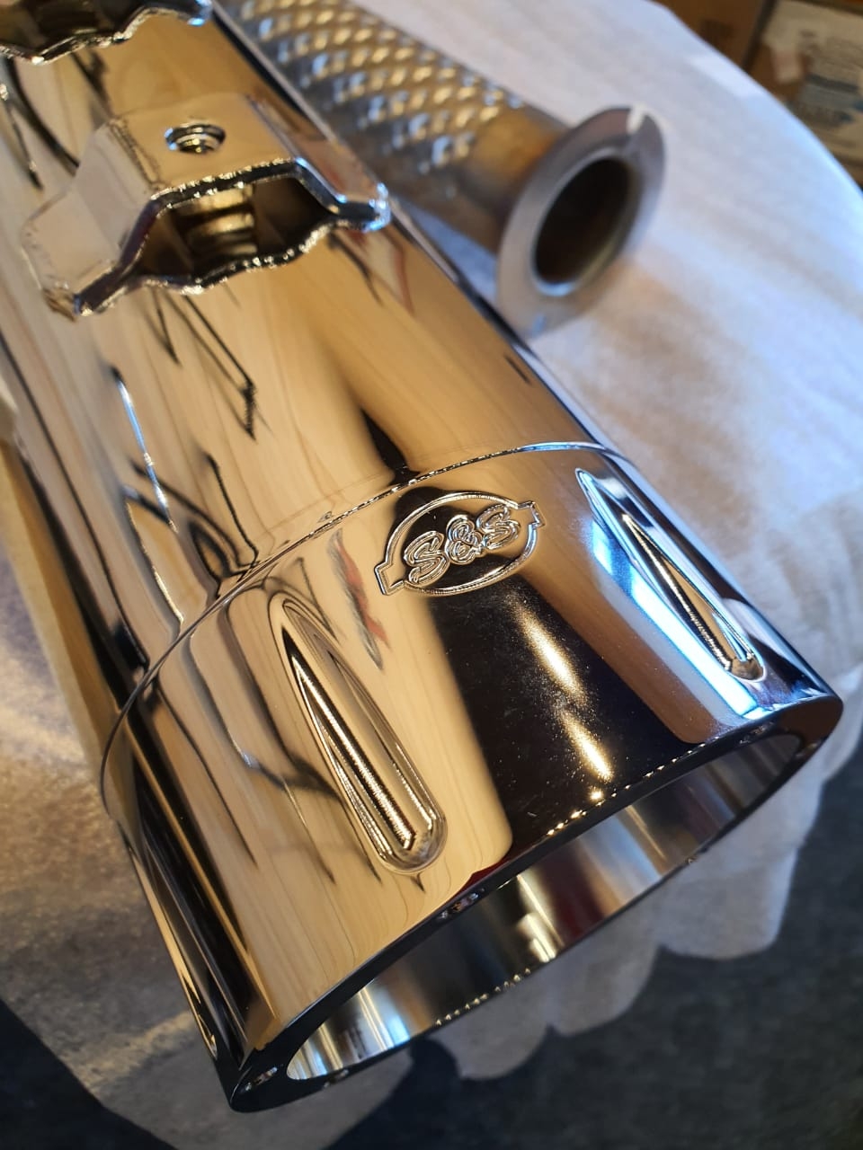 550-0624 S&S CYCLE MUFFLER 4.5" SLIP-ON MK45 CHROME TRACER END CAP-CHROME BODY FINISH (FL99-16)