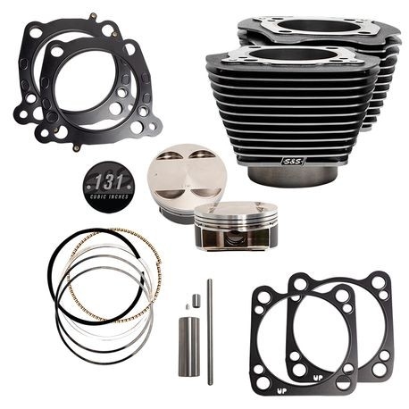 910-0764 S&S Cycle 131" Big Bore Stroker Cylinder & Piston Kits for 2017-'20 M8 models Black Granite with Highlighted Fins