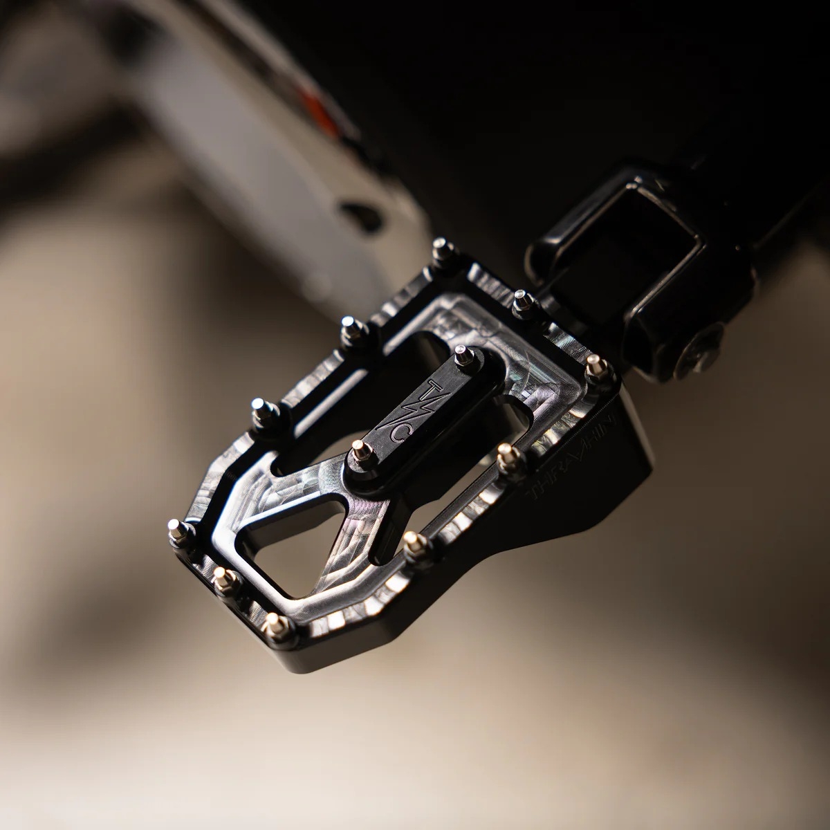 Подножки THRASHIN® Aggressor разработаны для обеспечения максимального сцепления с дорогой и увеличения дорожного просвета, сохраняя при этом элегантный и вневременной дизайн. Каждая подножка оснащена 12 конусообразными шипами из нержавеющей стали и имеет вырез для улучшения угла наклона. Эти подножки не только отлично выглядят, но и улучшают ощущения от езды на мотоцикле.