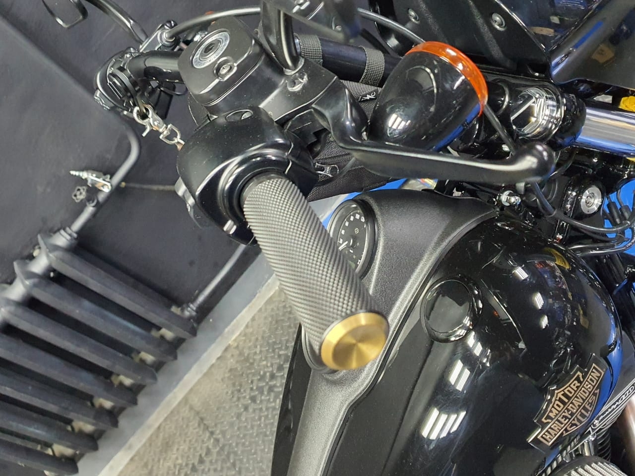 07-334 Arlen Ness Grips Fusion Knurled Throttle By Wire Black Brass Endcap