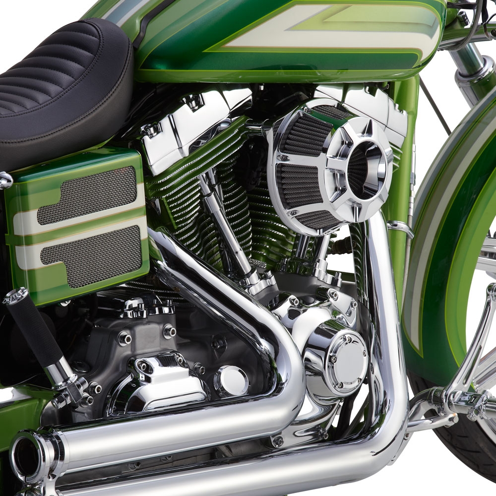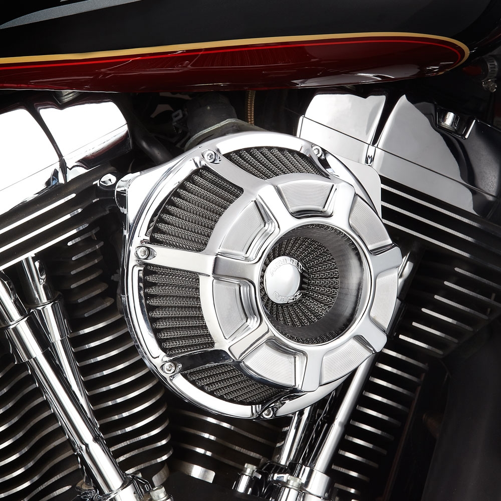 - Система устраняет проблемы с маслом, связанные с двигателями M8, направляя лишнее масло вентиляции обратно в двигатель. Чтобы масло не насыщало фильтр и не ограничивало поток воздуха, Arlen Ness также встроили новый запатентованный уловитель масла, который можно обслуживать одновременно с фильтром.