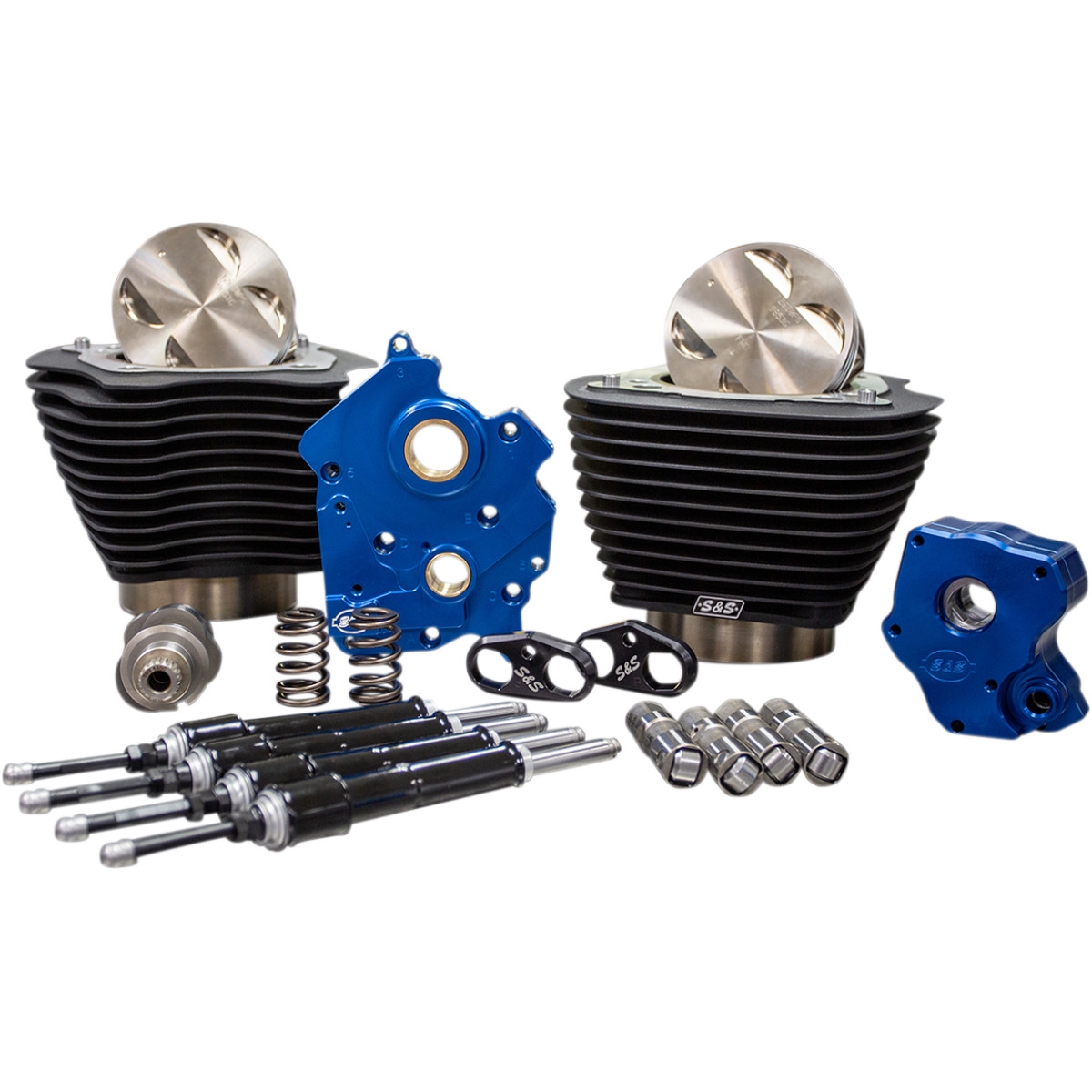 310-1057 S&S Cycle Power Package - 124" CI Oil Cooled, Chain Drive with Non-Highlighted Fins and Black Pushrod tubes for 107" M8