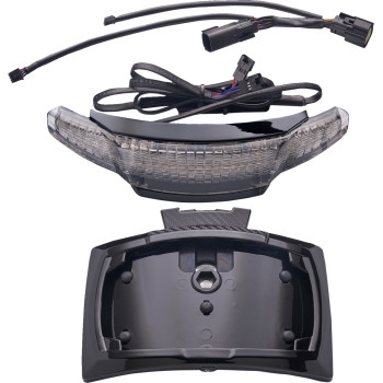 Задний фонарь и держатель номерного знака Ciro® Latitude — это эффектный способ персонализировать заднее крыло. Этот фонарь, подключаемый по принципу «plug-n-play», заменяет весь штатный блок освещения светодиодным габаритным, стоп-сигналом и указателями поворотов (жёлтые). В комплект также входит уникальное крепление номерного знака со скрытыми крепежными элементами, которое преображает заднюю часть вашего мотоцикла.