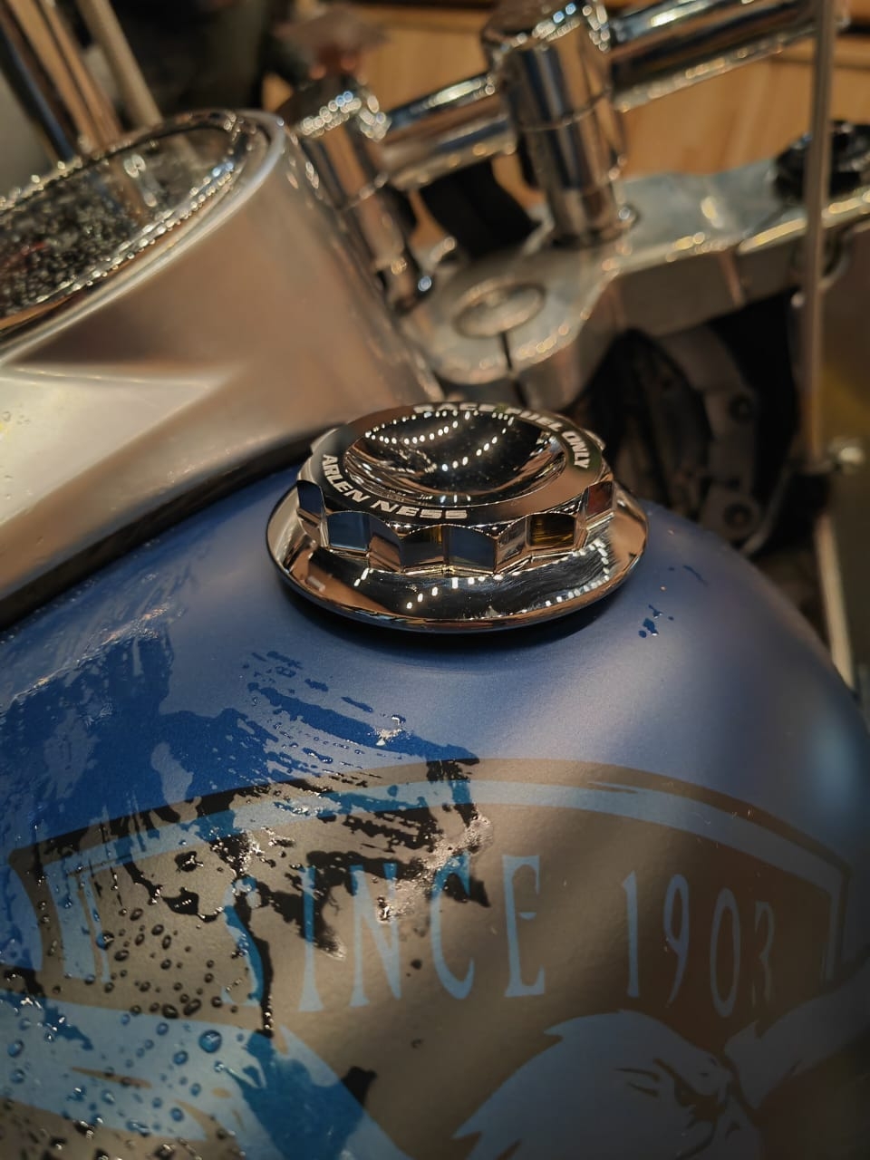 701-011 Arlen Ness Gas Cap 12- point. Chrom 96-18 H-D