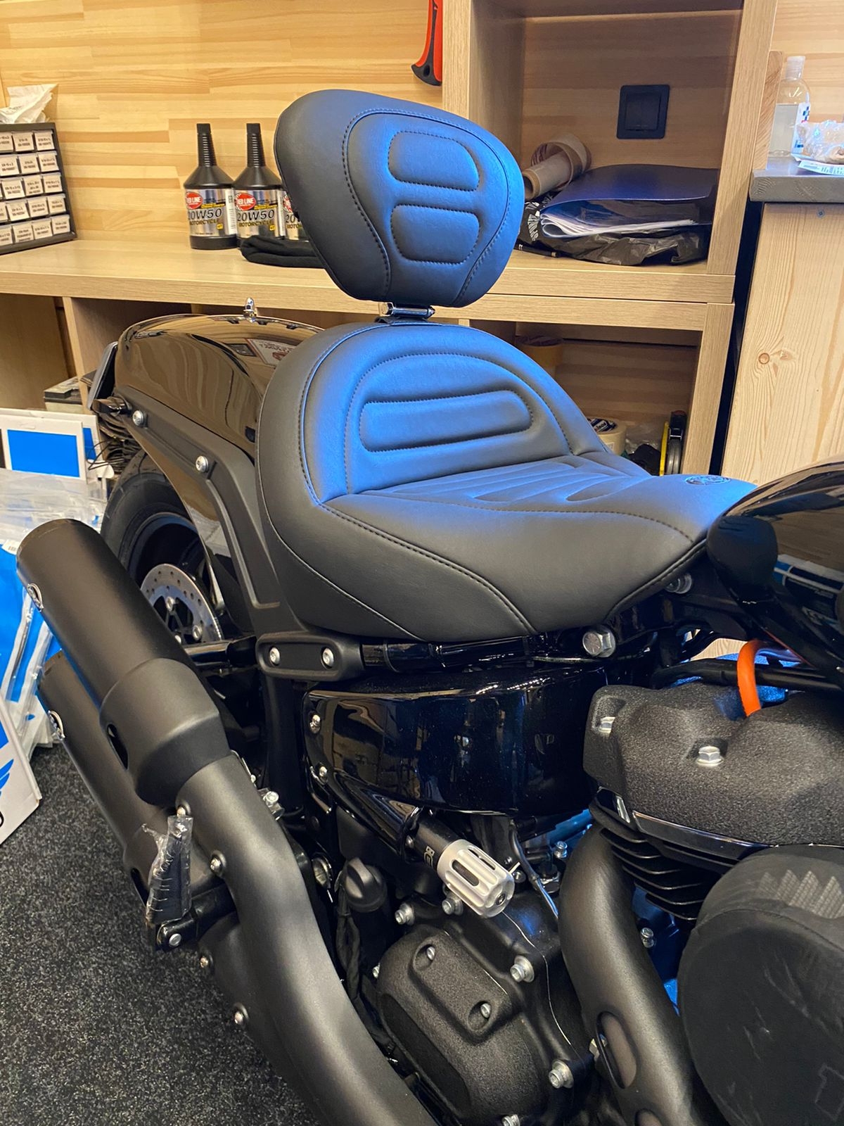 79334 Mustang Standard Touring Solo Seat with Driver Backrest for Harley-Davidson Fat Bob 2018-'21, Trapezoid, Black